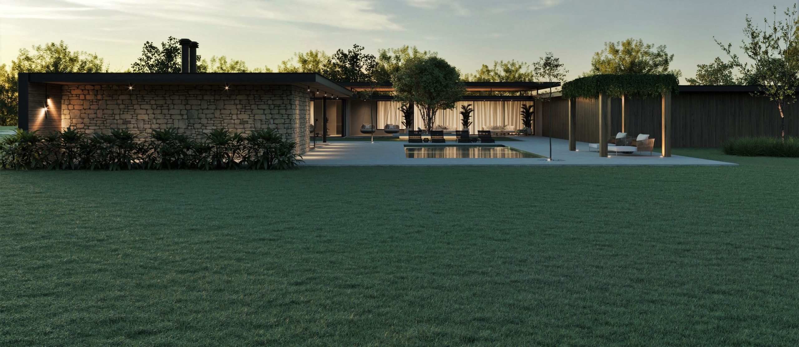 Casa-sede de haras ganha jardim com espécies e grama resistente à seca!