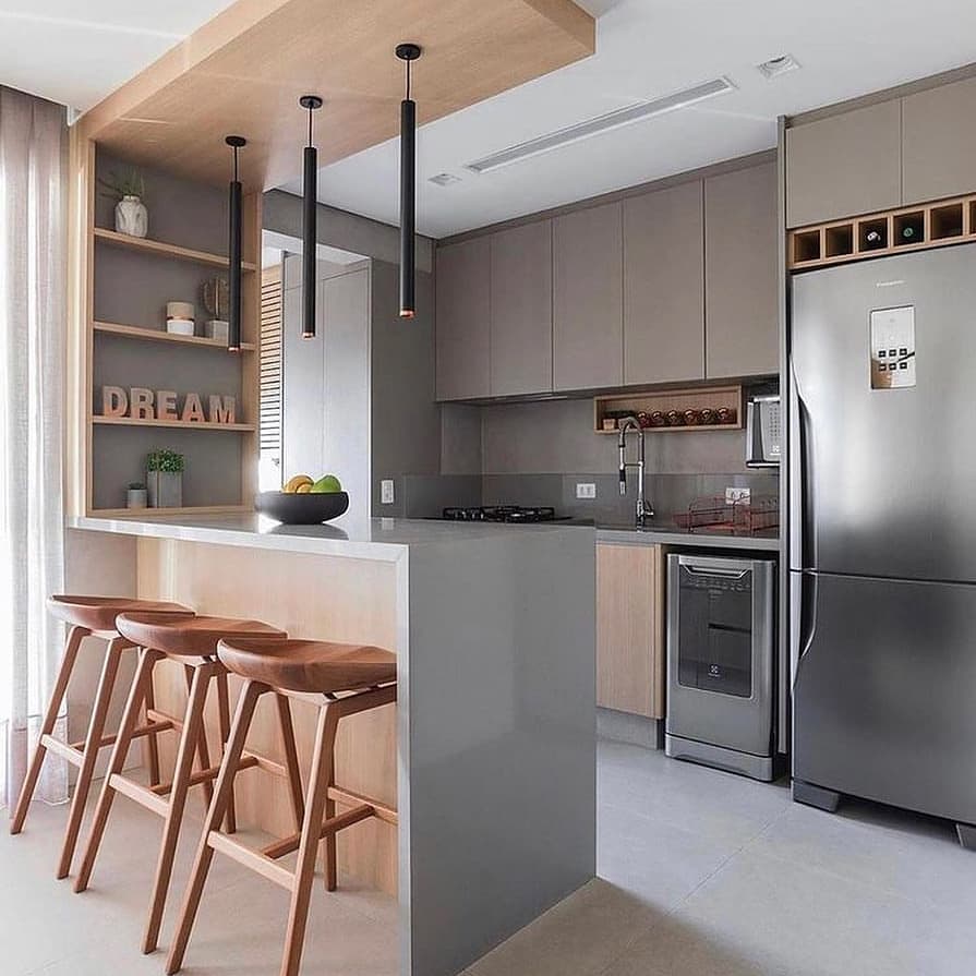 Outro elemento-chave de uma cozinha americana é o refrigerador. Em vez de um refrigerador grande, que pode não caber em um apartamento, considere um refrigerador de duas portas. Você pode encontrar refrigeradores de duas portas em várias medidas, o que significa que você pode encontrar um que se ajuste em seu espaço.