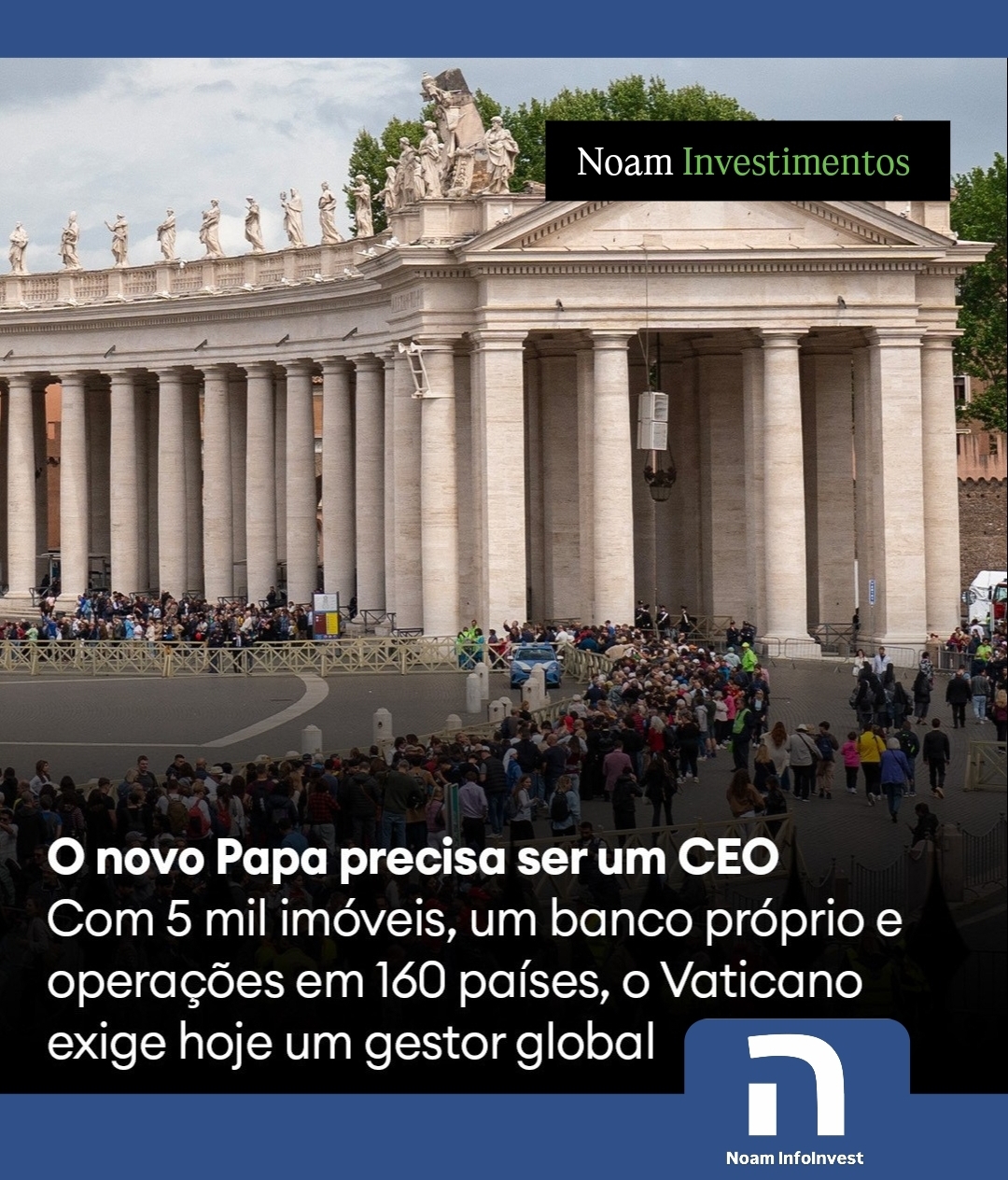 O próximo Papa terá um desafio que vai além da liderança espiritual de mais de 1,3 bilhão de fiéis. Hoje, o Vaticano é uma estrutura complexa, com ativos financeiros e imobiliários bilionários, exigindo do Sumo Pontífice não apenas fé e carisma, mas habilidades de um verdadeiro CEO global.